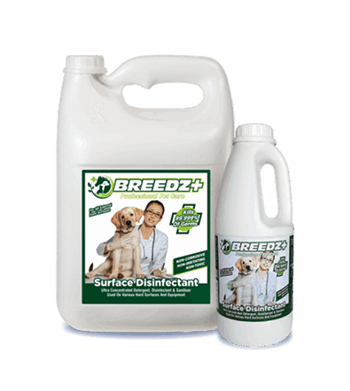 An ultra-concentrated detergent, disinfectant and sanitizer based on Quaternary Ammonium Compounds, Biguanide Compounds, and non-ionic surfactants with a neutral odour. Breedz Surface Disinfectant is a must use product for kennels, stables, animal shelters and basically anywhere where disinfection is required. For cleaning and disinfecting of floors, walls, tiles, kennels, cages, examination tables, instruments and many more. Also suitable for use in industrial, domestic and institutional areas. Breedz Surface Disinfectant eliminates unpleasant odours by simply destroying the bacteria, leaving surfaces effectively clean and germ free. Breedz Surface Disinfectant is highly effective against a broad spectrum of micro-organisms. Biodegradable, Non-toxic, Non-irritating and Non- corrosive.