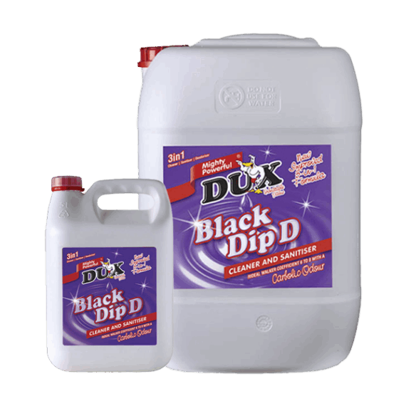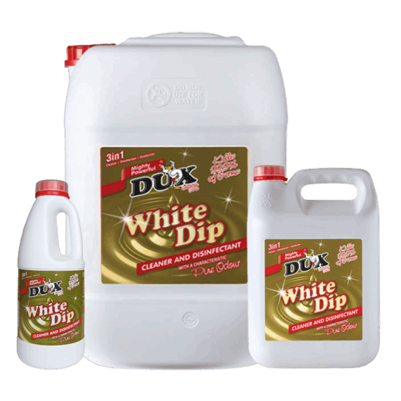 A concentrated dark brown 3-in-1 outdoor sanitiser, deodoriser and all-purpose cleaner, designed to be used on all hard surfaces such as floors, walls, drains, refuse bins and so much more. It effectively cleans and sanitises most common areas, leaving surfaces clean and fresh. Its unique chemical composition assists in fast neutralization of unpleasant odours and effective sanitising all-in-one operation. DUX BLACK DIP D is non-corrosive in diluted form and is suitable for use in salt, fresh, hard and soft water. DUX BLACK DIP D forms a stable emulsion when diluted and is extremely economical in use.
