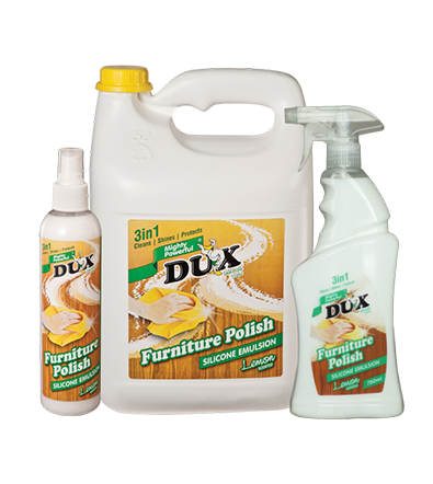 FURNITURE POLISH is silicone emulsion designed to enhance to the look and to protect. Wood furniture can really add warmth to the home, but over time it may lose its luster. DUX FURNITURE POLISH will rejuvenate and enhance the look on wooden surfaces. It gently removes dust and dirt without scratching leaving surfaces clean, shiny and protected.