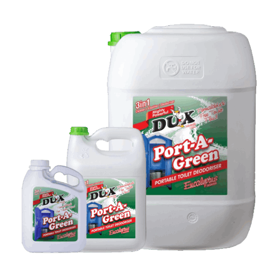 DUX PORT-A-GREEN is a highly concentrated dark blue liquid with a powerful yet pleasant odour. Specially designed for use in portable toilets to minimize foul odours and activate the breakdown of waste solids and paper towels, making it easier to empty tanks. liquifies solid waste to maintain portable toilets even during heavy usage. It contains powerful odour masking agents which makes it ideal It for enclosed toilet areas ensuring your portable toilet stays fresher and cleaner for longer. DUX PORT-A-GREEN has a multifunction, not only does it maintain portable toilets but helps prevent blocked lines and pipes during pump out making your system run smoother and easier to clean. Septic tank safe, non-toxic, biodegradable and environmentally friendly portable toilet cleaner, liquefier and odour neutralizer. Contains eucalyptus to act as a natural deterrent against pesky nuisances.